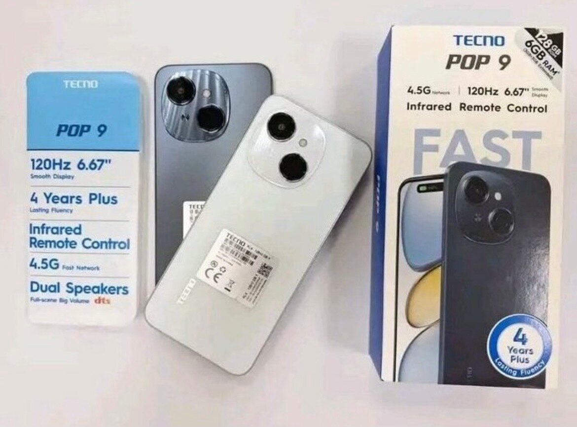 Découvrez le Tecno POP 9, un smartphone élégant avec un écran 6,67'' 120Hz, processeur 4G LTE, et des haut-parleurs double pour une expérience immersive. Commandez maintenant !