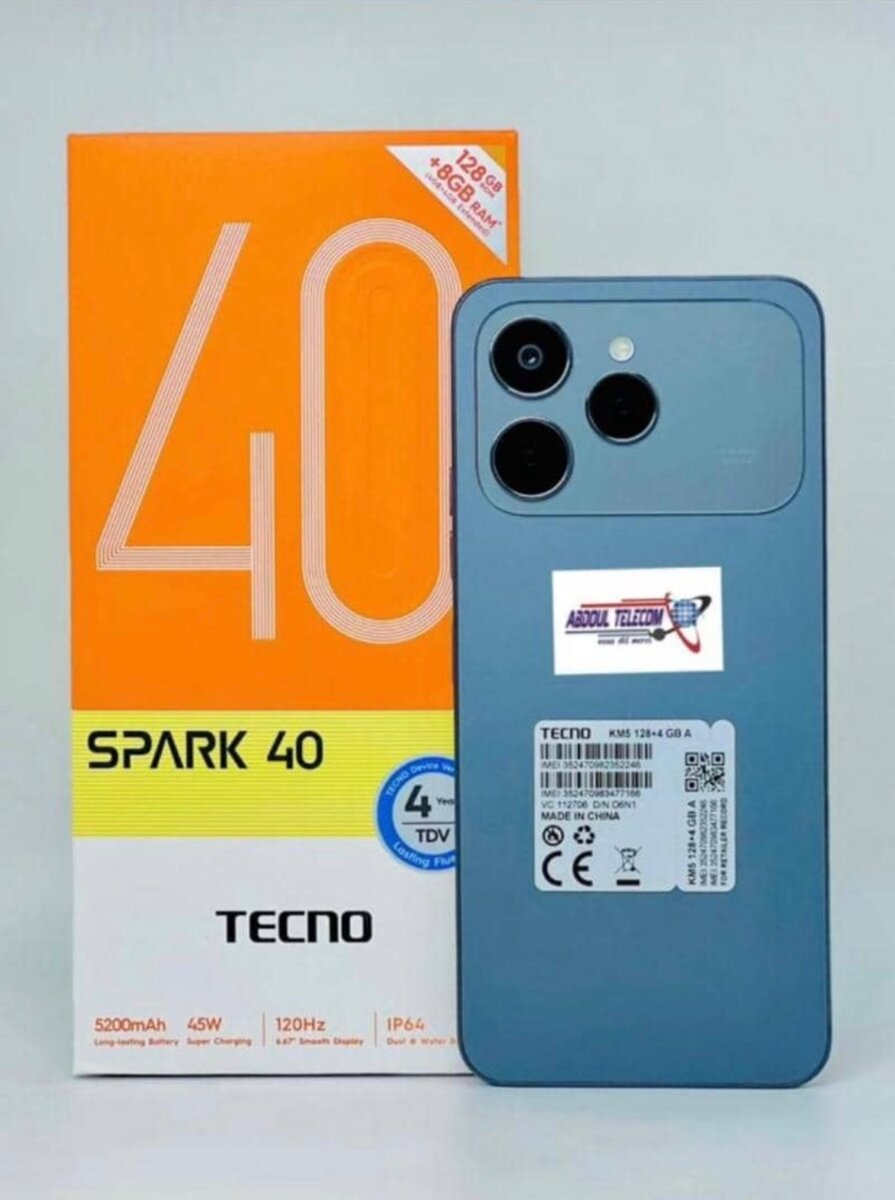 Découvrez le Tecno Spark 40 avec 128 Go de stockage et connectivité 4G. Parfait pour une expérience mobile fluide. Batterie 5200mAh et IP64 pour plus de durabilité.