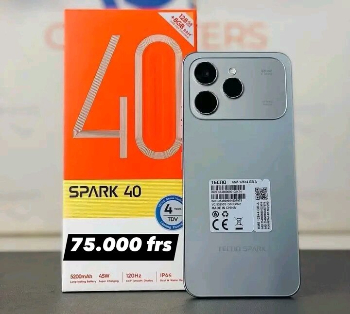 Découvrez le Tecno Spark 40, un smartphone performant doté d'un écran 120Hz, d'une batterie 5200mAh avec charge rapide 45W et d'une conception robuste IP64. Idéal pour les utilisateurs exigeants.