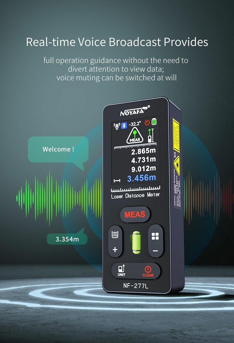 Mesurez avec précision grâce au télémètre laser Noyafa NF-277L. Il offre un stockage de données en temps réel, mesure jusqu'à 100 séries, et dispose d'un guidage vocal. Idéal pour les professionnels du bâtiment et du bricolage. Compact et facile à utiliser, c'est l'outil parfait pour une précision optimale.
