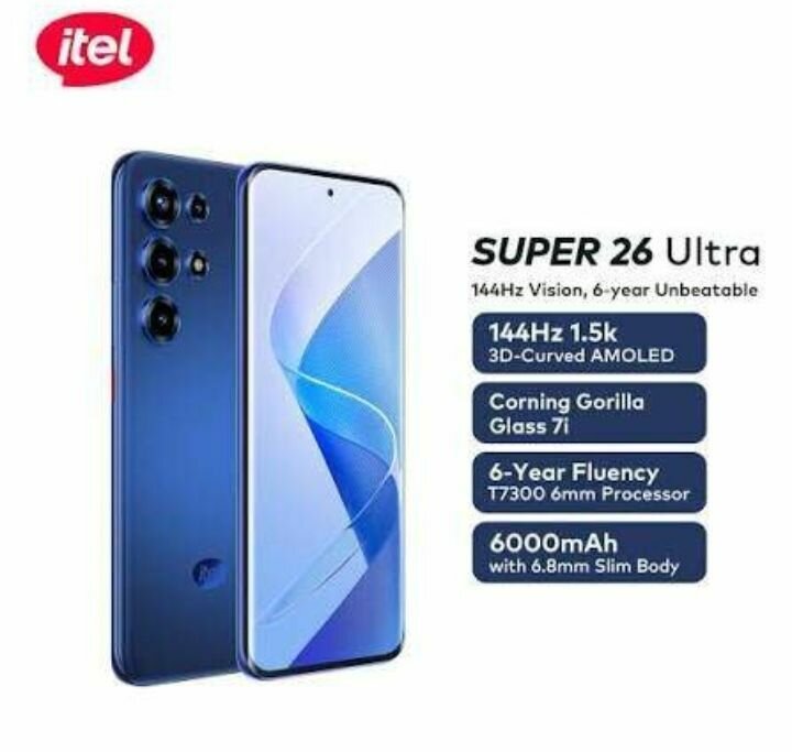 Découvrez itel SUPER 26 Ultra : écran 3D incurvé 144Hz, processeur T7300, batterie 6000mAh. Un smartphone performant et élégant pour vos besoins quotidiens