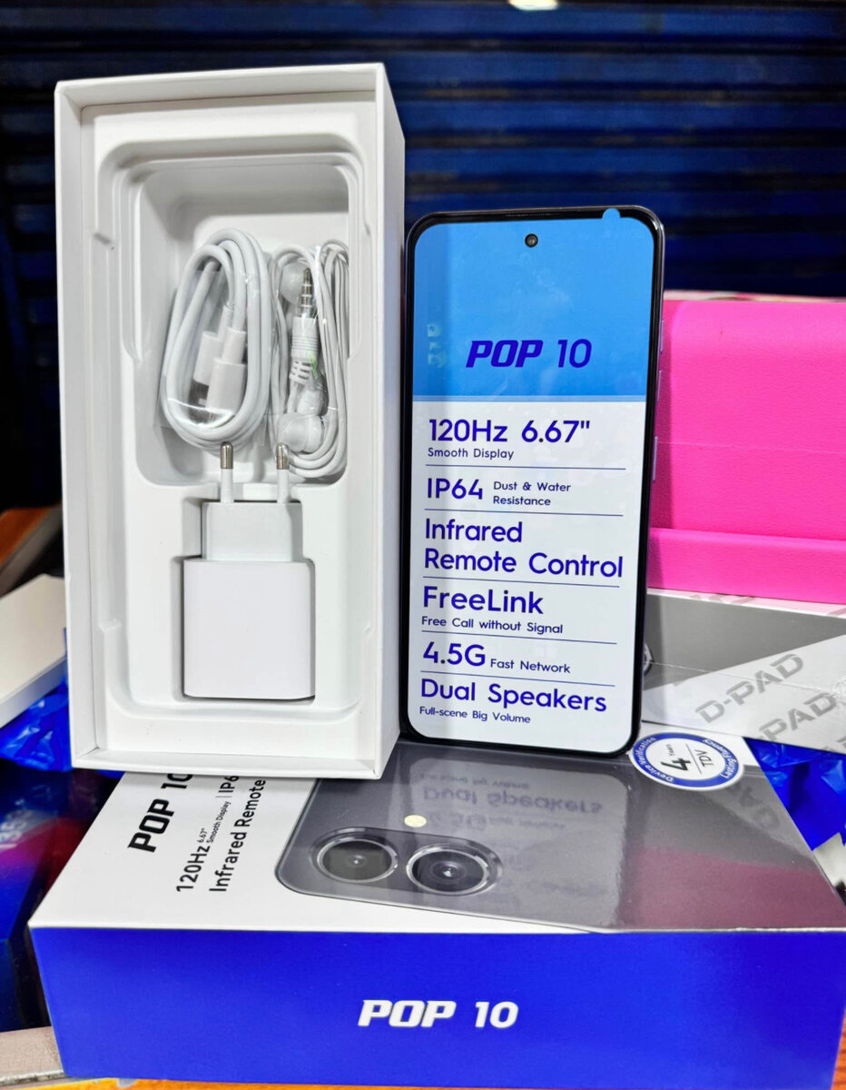 Découvrez le POP 10, un smartphone élégant doté d'un écran 120Hz de 6.67'' et d'une connectivité 4.5G. Équipé de haut-parleurs duaux pour une expérience audio exceptionnelle et d'une technologie infrarouge pour un contrôle à distance pratique. Résistant à l'eau et à la poussière avec sa certification IP64.