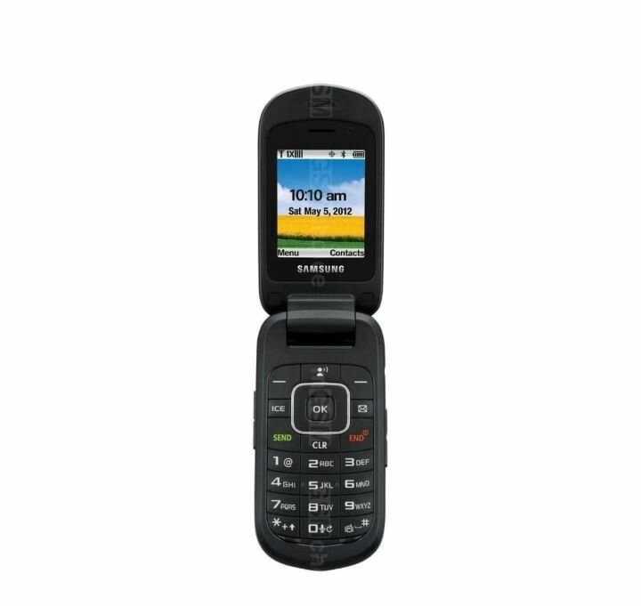 Téléphone à clapet Samsung avec clavier physique. Simple et robuste, idéal pour une utilisation quotidienne. Écran interne pour notifications.