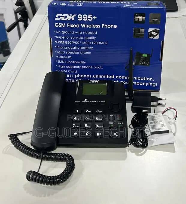Optez pour le téléphone fixe sans fil GSM DDK 995+ pour des communications claires et efficaces. Compatible avec les fréquences GSM 850/900/1800/1900MHz, ce téléphone offre une qualité sonore supérieure sans besoin de câblage terrestre. Sa batterie de qualité et sa grande capacité de répertoire téléphonique en font un choix idéal pour la maison ou le bureau. Inclut fonction SIM et identification de l'appelant.