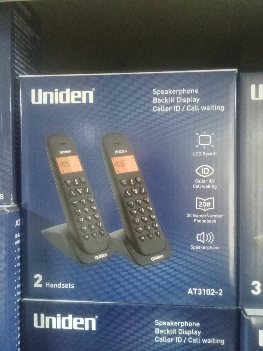 Ensemble de téléphones sans fil Uniden avec fonction mains libres, écran rétro-éclairé et identification de l'appelant. Parfait pour la maison ou le bureau, ce modèle offre une capacité de 20 numéros et un affichage facile à lire.