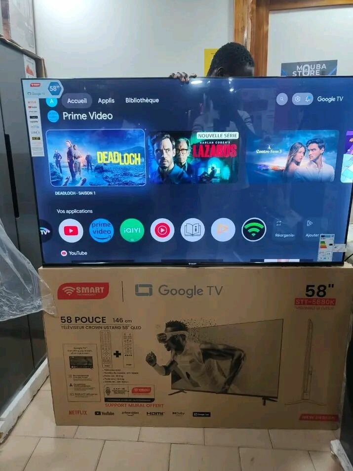 Découvrez une expérience visuelle exceptionnelle avec ce téléviseur SMART Google TV de 58 pouces. Équipé de la technologie Google TV, il offre un accès facile à vos applications de streaming préférées comme Prime Video, YouTube et Netflix. Profitez d'une qualité d'image exceptionnelle et d'une connectivité avancée pour une expérience de divertissement ultime à la maison.