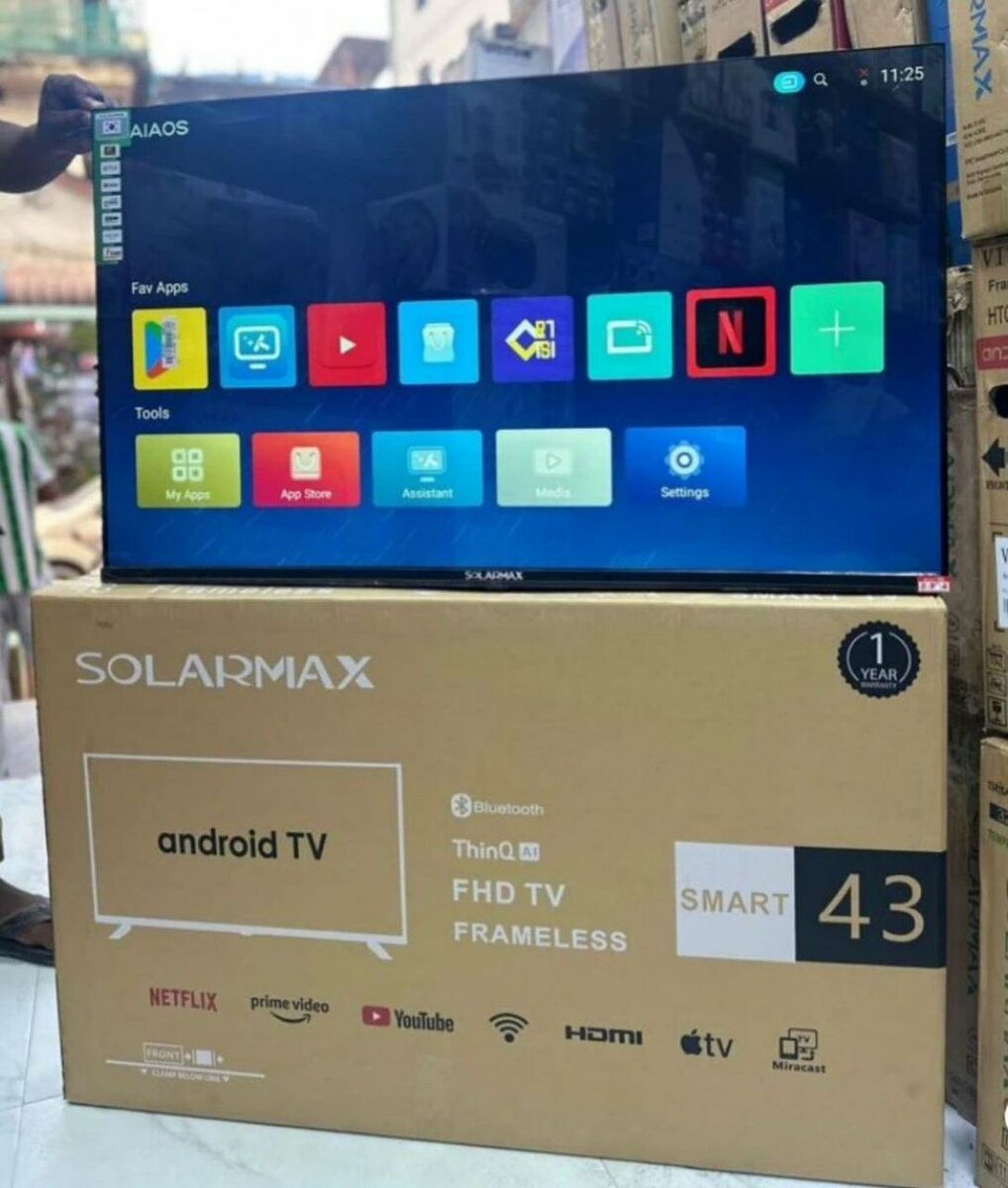 Découvrez le téléviseur SOLARMAX 43'' Android Smart TV FHD, équipé de la technologie Android TV pour un accès facile à vos applications préférées comme Netflix, YouTube et Prime Video. Profitez d'une image Full HD et d'une connectivité HDMI pour une expérience visuelle exceptionnelle. Idéal pour votre salon ou salle de séjour.