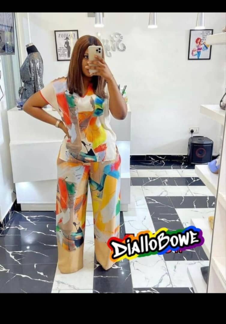 Éblouissante tenue pour femme avec motifs colorés, parfaite pour une journée décontractée ou une sortie estivale. Confort et style garantis!