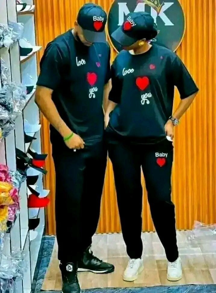 Exprimez votre amour avec ce set de vêtements assortis pour couples. Confortables et stylés, ils sont parfaits pour une journée décontractée ou une sortie en amoureux. Fabriqués en coton de qualité, ces ensembles sont doux, durables et tendance, avec des inscriptions romantiques qui captivent les regards.