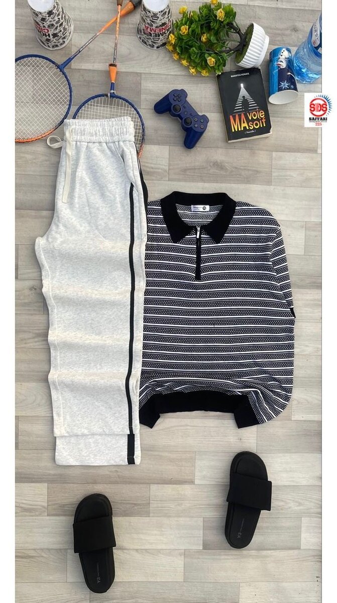 Découvrez notre ensemble de sport ultra-confortable, comprenant un polo rayé élégant et un pantalon de jogging gris avec fermeture éclair. Parfait pour une séance de sport ou une journée détente, cet ensemble allie style et confort. À ne pas manquer pour un look décontracté tendance!