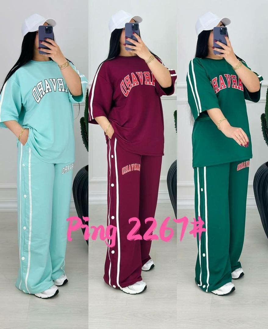 Ensemble décontracté pour femmes avec t-shirt ample et pantalon large, idéal pour le sport ou la détente. Disponible en plusieurs couleurs tendance. Confortable, stylé et parfait pour un look casual chic.
