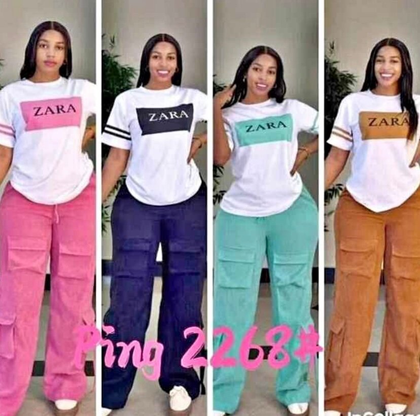 Optez pour ce set confortable et stylé comprenant un t-shirt Zara et un pantalon cargo tendance. Parfait pour un look décontracté au quotidien, il s'adapte à toutes les occasions. Disponible en plusieurs couleurs vives pour affirmer votre style.