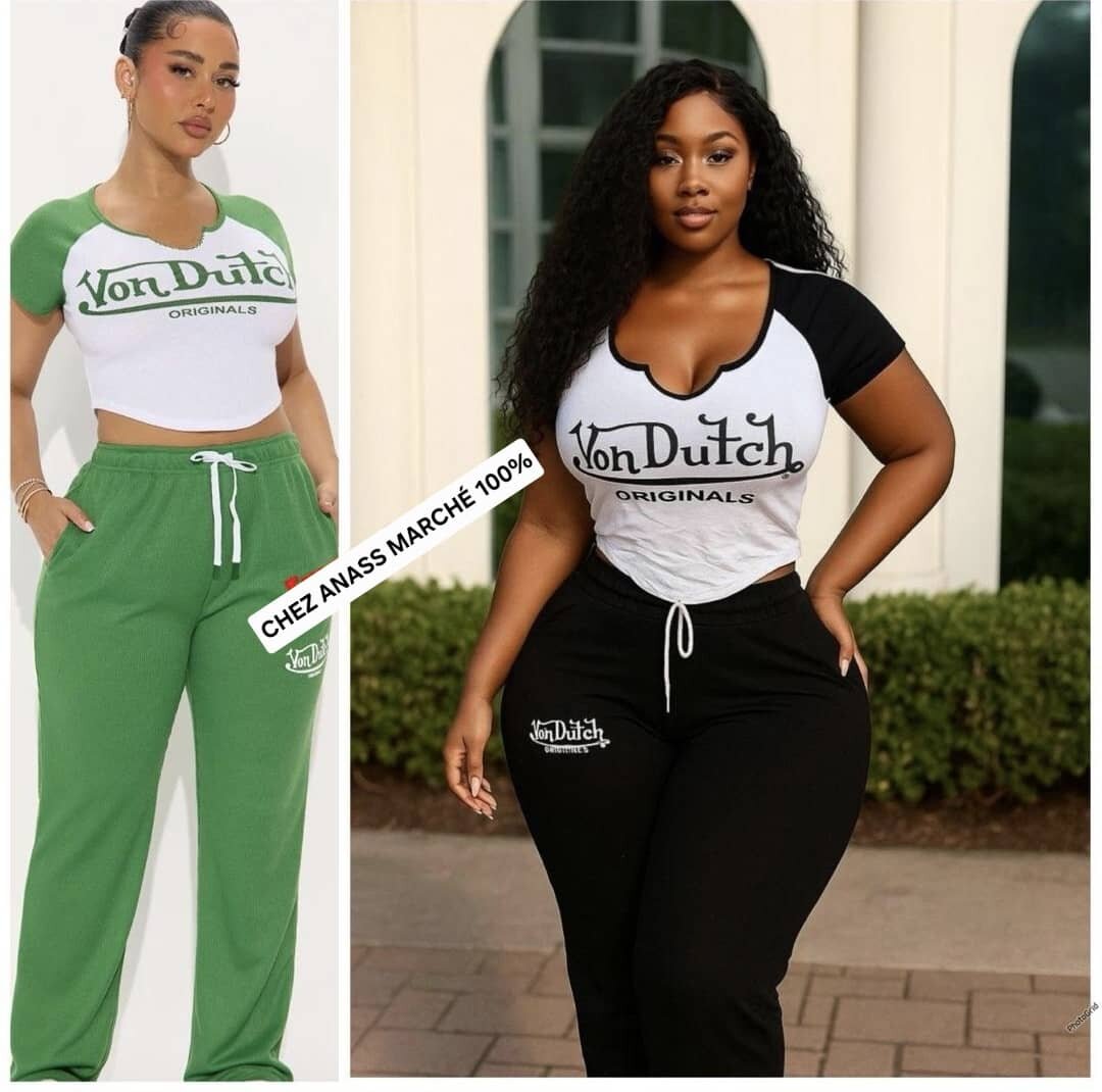 Adoptez un style casual-chic avec cet ensemble Von Dutch, idéal pour un look confortable et tendance. Parfait pour une sortie décontractée ou un moment de détente à la maison.
