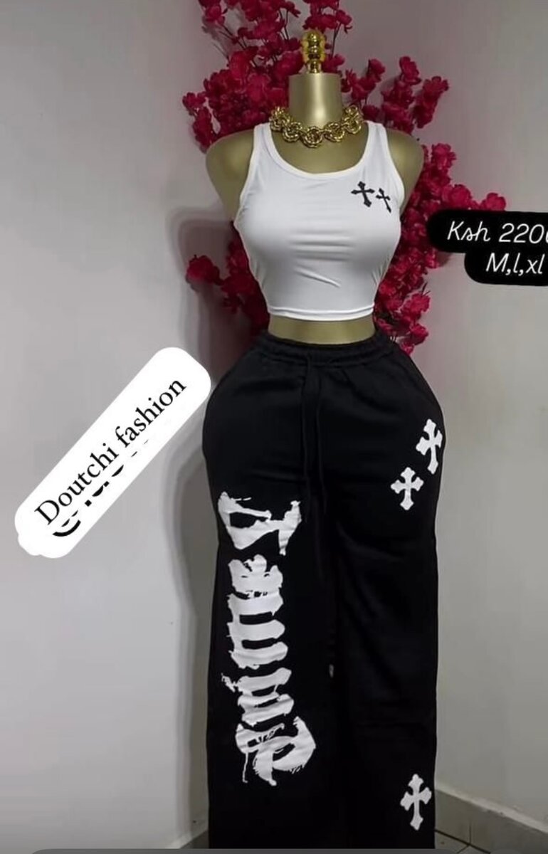 Découvrez ce look urbain audacieux : un débardeur blanc élégant avec un design croix, accompagné d'un pantalon noir à motifs graphiques saisissants. Idéal pour une sortie décontractée ou une journée entre amis, cette tenue allie confort et style. Disponible en tailles M, L et XL. Parfait pour un style unique et tendance.