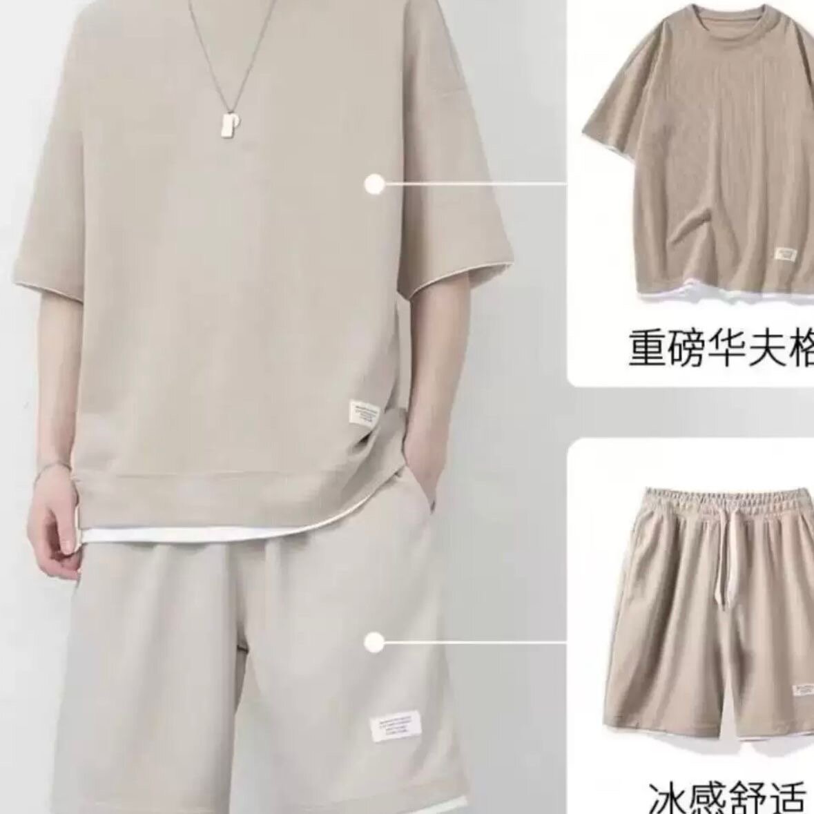 Ensemble short et t-shirt pour homme, idéal pour l'été. Confortable et respirant, parfait pour les journées chaudes. Style décontracté pour une allure moderne.