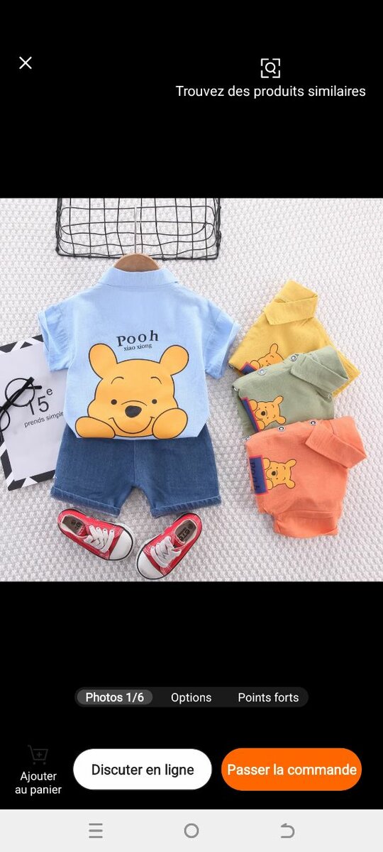 Adorable ensemble pour garçons avec motif Winnie. Composé d'un t-shirt coloré et d'un short en denim, idéal pour les journées d'été. Confortable et stylé, parfait pour jouer ou pour des sorties en famille. Disponible en plusieurs couleurs attrayantes avec imprimé mignon de personnage.