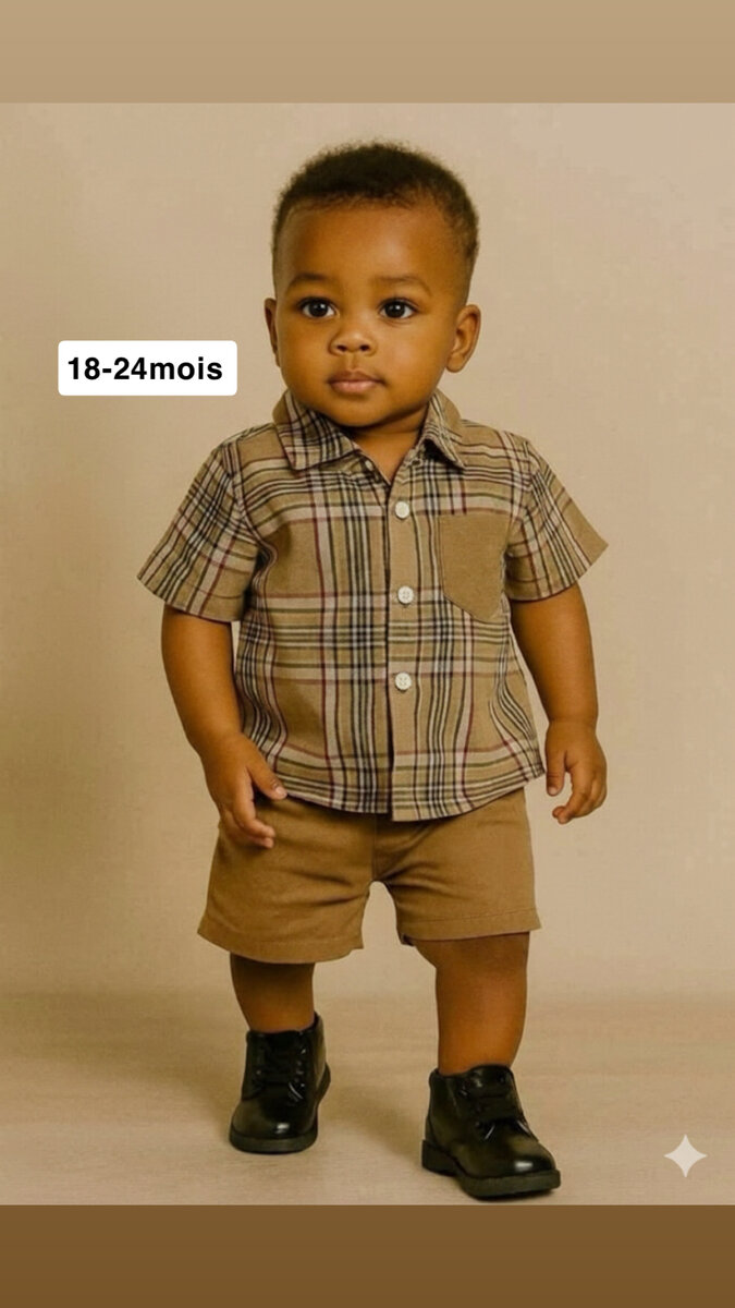 Offrez à votre petit garçon ce charmant ensemble à carreaux, idéal pour les occasions spéciales ou une journée élégante au quotidien. Ce vêtement combine confort et style avec une chemise à manches courtes et un short assorti. Parfait pour les enfants de 18 à 24 mois.