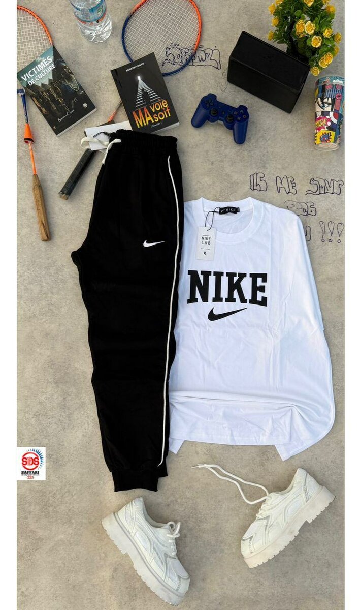 Adoptez un look sportif et confortable avec cet ensemble Nike pour homme. Le t-shirt blanc et le pantalon noir offrent une allure moderne et élégante. Parfait pour le sport ou les sorties décontractées. Idéal pour se sentir bien tout en restant stylé.