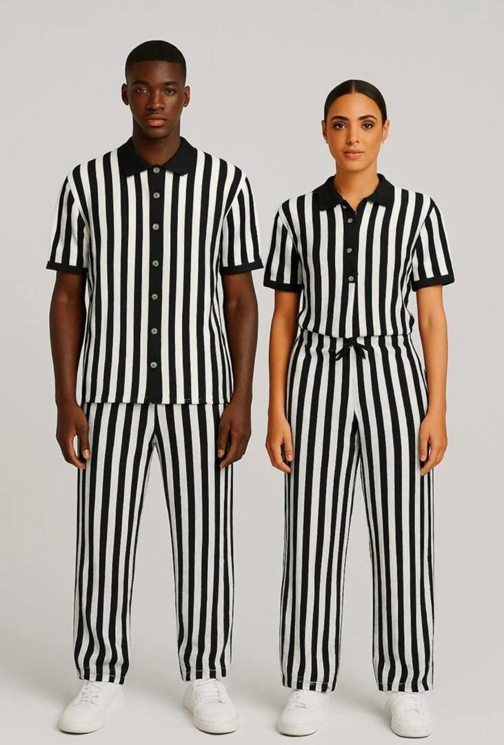 Découvrez notre ensemble rayé unisexe, parfait pour un look audacieux et moderne. Confortable et tendance, idéal pour toutes occasions.