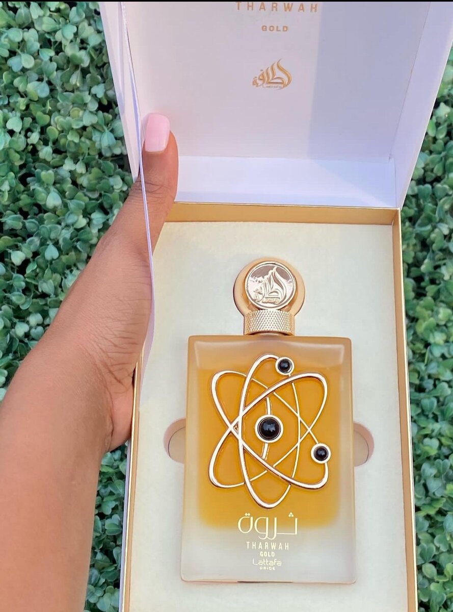 Tharwah Gold is a candied fragrance with subtle hints of floral scents inherited from jasmine, lavender and orange blossom.