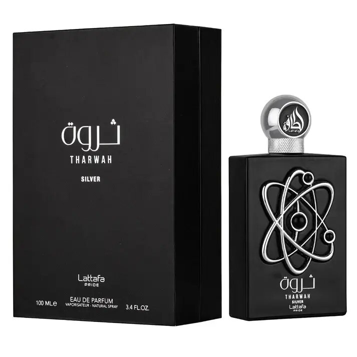 Tharwah Silver was launched in 2022. Top notes are Mint and Bergamot; middle notes are Lavender and Clary Sage; base notes are Musk, Vetiver and Cedar.