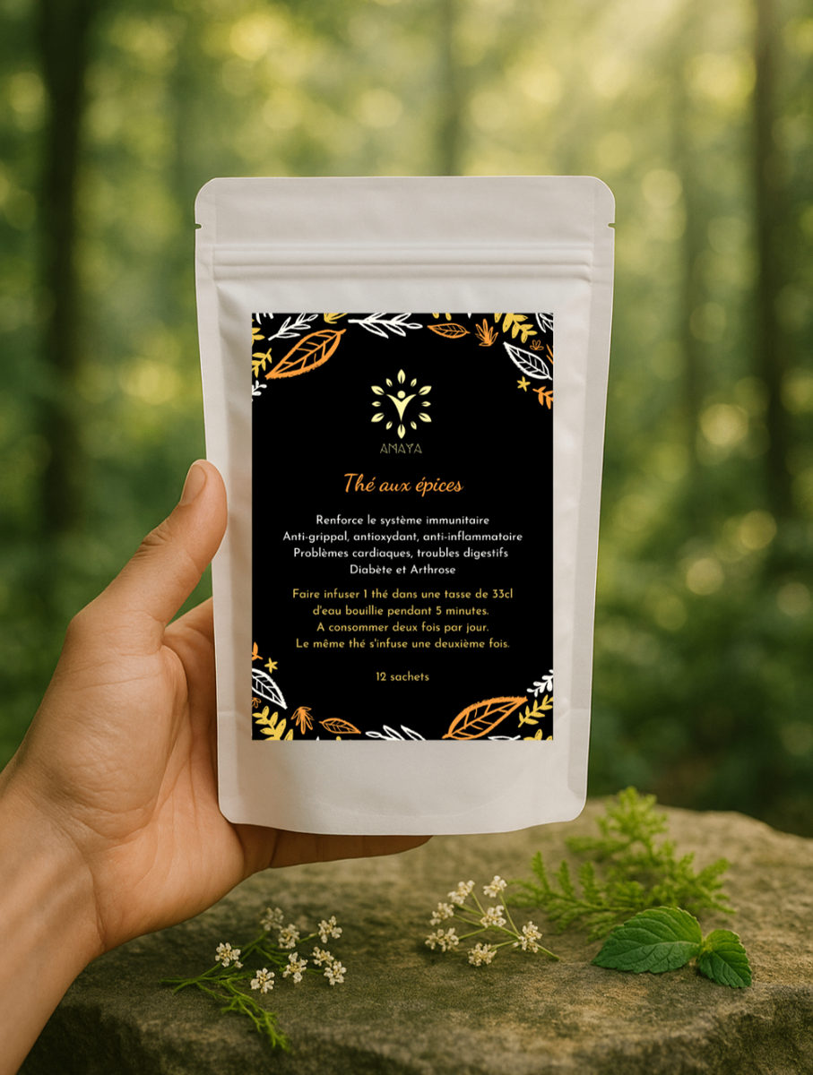 Découvrez notre thé aux épices, parfait pour une ambiance chaleureuse. Mélange de saveurs exquises pour stimuler vos sens. Idéal pour les pauses relaxation. Profitez d'une tasse revitalisante!