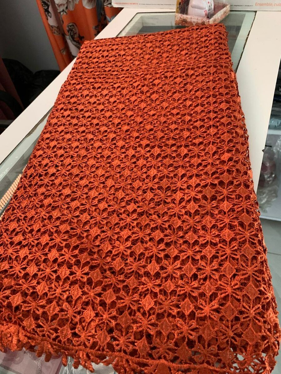 Découvrez ce magnifique tissu en dentelle orange, idéal pour la confection de robes élégantes et originales. Parfait pour les soirées ou les occasions spéciales, sa texture délicate et sa couleur vive ajouteront une touche de glamour à votre look.