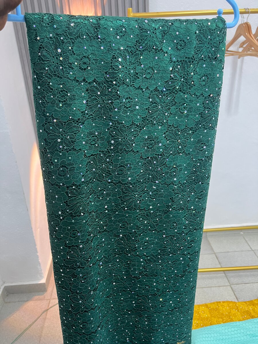 Ce magnifique tissu en dentelle verte est idéal pour la création de robes élégantes et de vêtements sur mesure. Orné de motifs floraux délicats, il ajoute une touche de sophistication à toute tenue. Parfait pour les soirées ou les événements spéciaux, ce tissu donne vie à votre créativité.