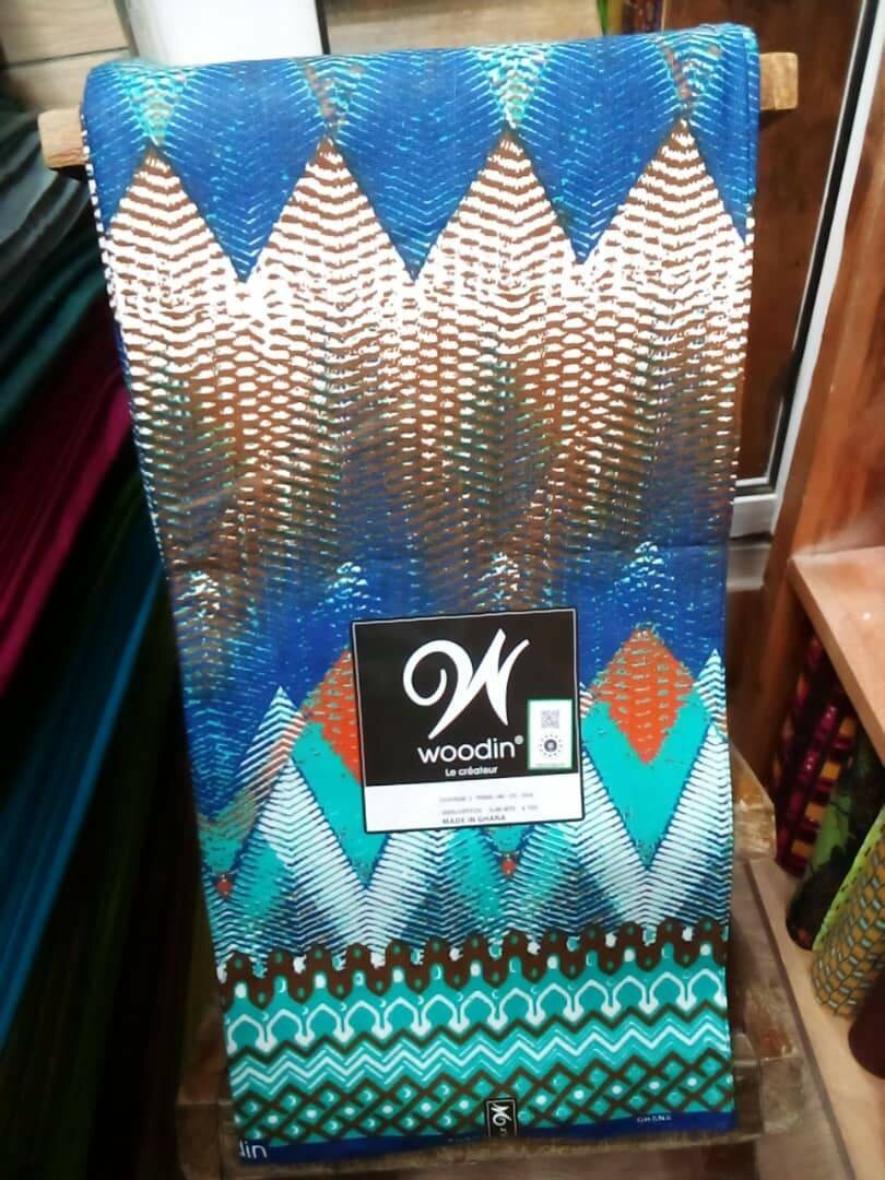 Transformez vos créations avec ce tissu wax vibrant de la collection Woodin. Parfait pour la couture, la décoration ou le design mode.