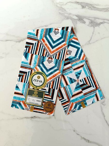 Tissu wax africain vibrant avec motifs géométriques, idéal pour vêtements et décoration. Parfait pour ajouter une touche colorée et culturelle à votre intérieur ou garde-robe. Offre qualité et authenticité. Complet de 6 yards
