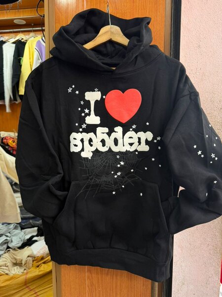 Veste à capuche noire avec motifs blancs