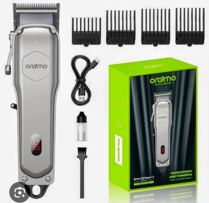 Découvrez la tondeuse à cheveux professionnelle Oraimo, équipée de lames en acier inoxydable de haute qualité et d'un moteur puissant pour un résultat précis. Livrée avec 4 guides de coupe, un câble USB et une brosse de nettoyage. Un choix idéal pour les hommes.