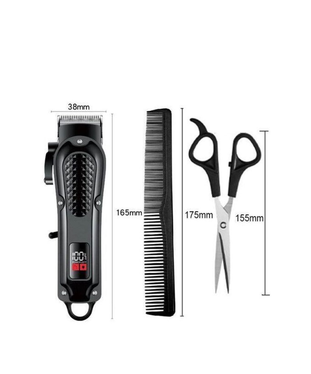 Tondeuse à cheveux professionnelle avec accessoires complets. Idéale pour des coupes nettes à domicile ou en salon. Inclut peignes, ciseaux, et différents guides de coupe pour une personnalisation parfaite.