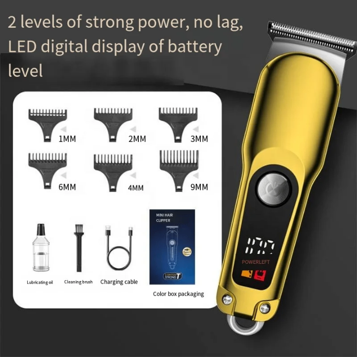 Tondeuse électrique professionnelle avec 6 guides, affichage numérique LED du niveau de batterie. Conception rechargeable et sans fil pour une utilisation facile. Idéal pour les hommes.