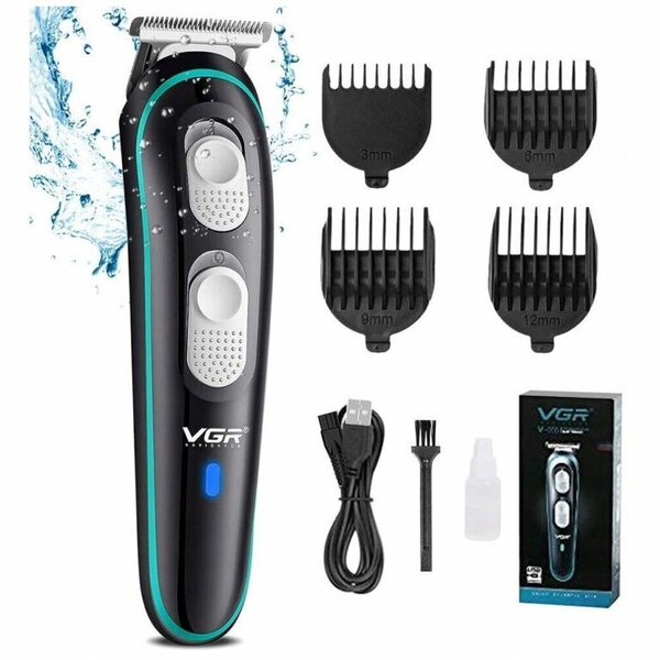 Tondeuse électrique VGR avec lames tranchantes et accessoires complets. Idéale pour une coupe de cheveux précise et sans effort à domicile. Choix parfait pour un entretien facile et une finition stylée.