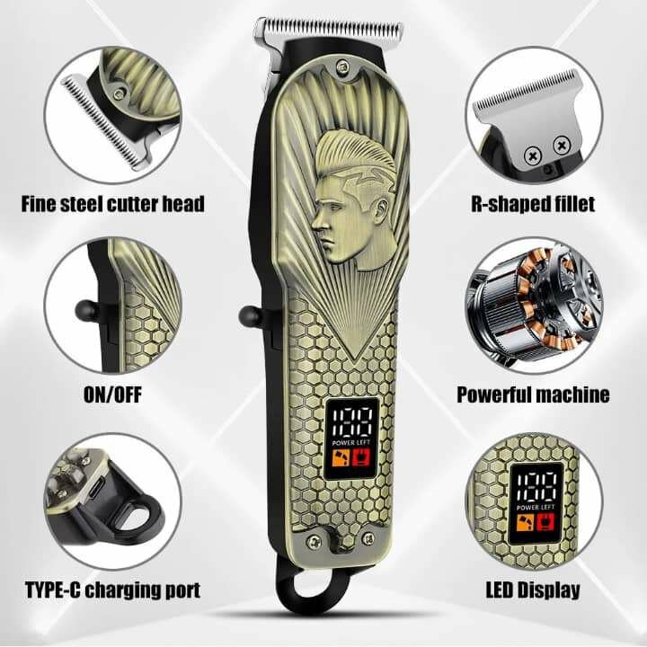 Tondeuse à cheveux électrique avec affichage LED, idéale pour un style précis à la maison. Inclut plusieurs guides de coupe, rechargeable via port Type-C. Convient pour tous les types de cheveux. Design moderne et puissant moteur pour une utilisation efficace.
