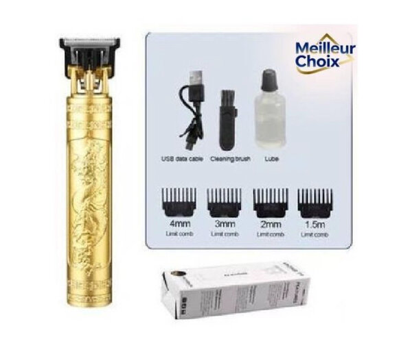 Découvrez la tondeuse électrique Vintage T9, parfaite pour des coupes précises et stylées. Son design doré élégant s'intégrera parfaitement dans votre salle de bain. Facile à utiliser, elle est idéale pour les hommes recherchant une apparence soignée. Inclut câble USB pour un rechargement rapide. Faites l'expérience d'une coupe professionnelle chez vous !