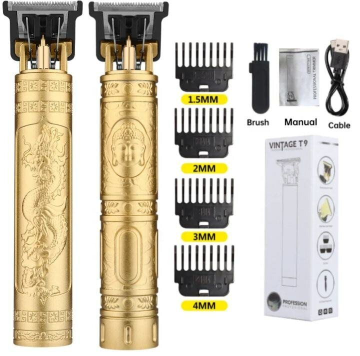 Obtenez des coupes précises avec la Tondeuse électrique Vintage T9. Ce modèle élégant en alliage doré vous offre plusieurs guides de coupe, parfait pour les styles variés. Idéale pour les professionnels comme pour un usage à domicile, elle est livrée avec ses accessoires pratiques pour un entretien optimal. Découvrez une expérience de coupe sans effort et de qualité.