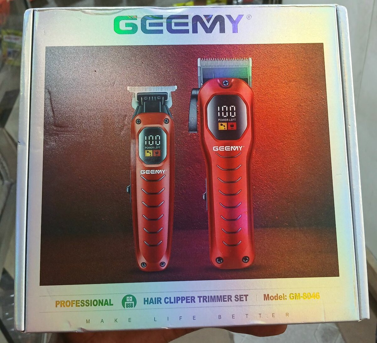 Un carton contenant 2 tondeuses Geemy de très bonne qualité. Un pour coiffé et la deuxième pour limiter. à bon prix....