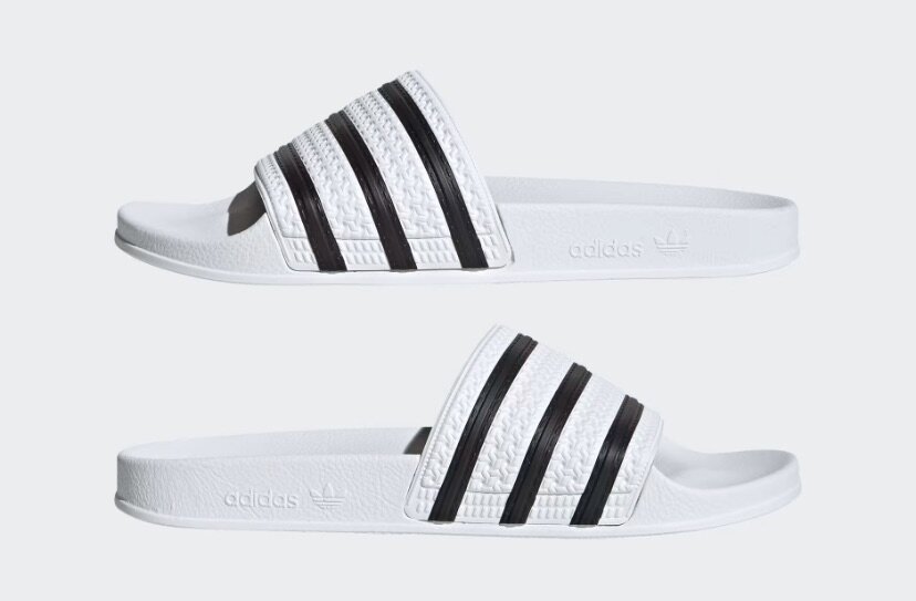 Confort ultime avec les tongs adidas à rayures iconiques, parfaites pour la plage ou la maison.