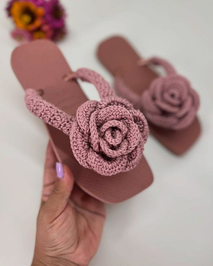 Ces élégantes tongs ornées d'une rose en crochet apportent une touche unique à votre look estival. Idéales pour les journées décontractées ou les sorties à la plage, elles allient confort et style. Un incontournable pour ceux qui aiment se démarquer avec des détails faits main. Offrez à vos pieds le confort qu'ils méritent !