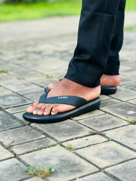Tongs LOUHO noires classiques, pratiques pour tous les jours, robustes et passe-partout.