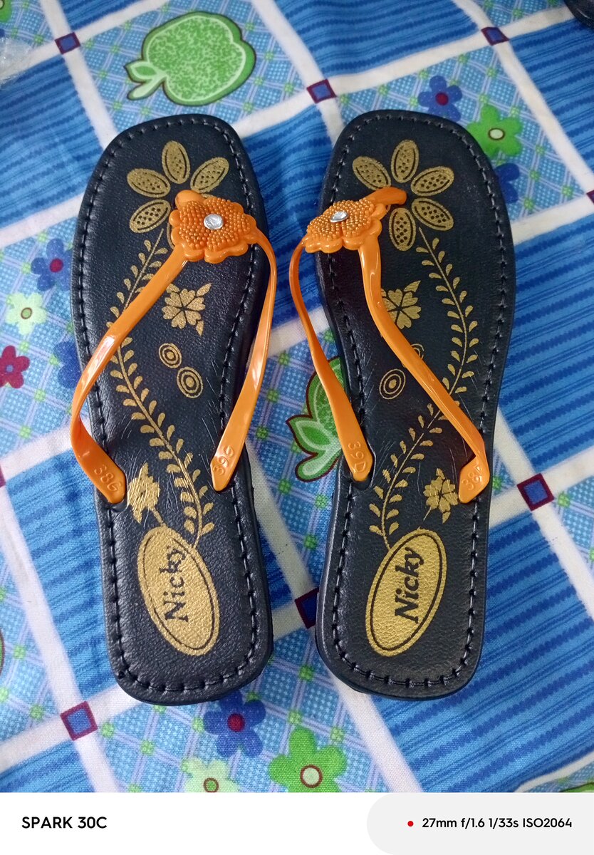 Découvrez les tongs élégantes Nicky pour femmes, idéales pour l'été. Dotées de motifs floraux attrayants et de lanières orange confortables, elles sont parfaites pour la plage ou la piscine.