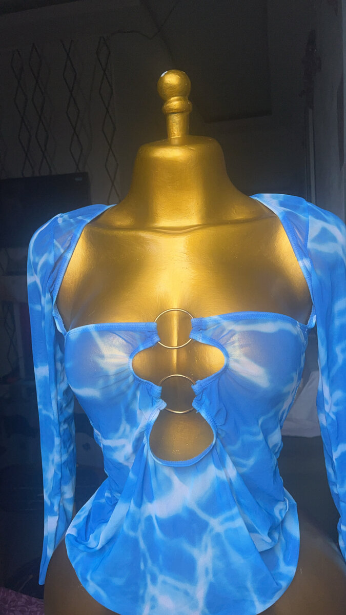 Ce top bleu à découpes est parfait pour un look audacieux et moderne. Avec ses détails uniques, il attire tous les regards et souligne votre silhouette. Idéal pour les sorties ou les soirées.