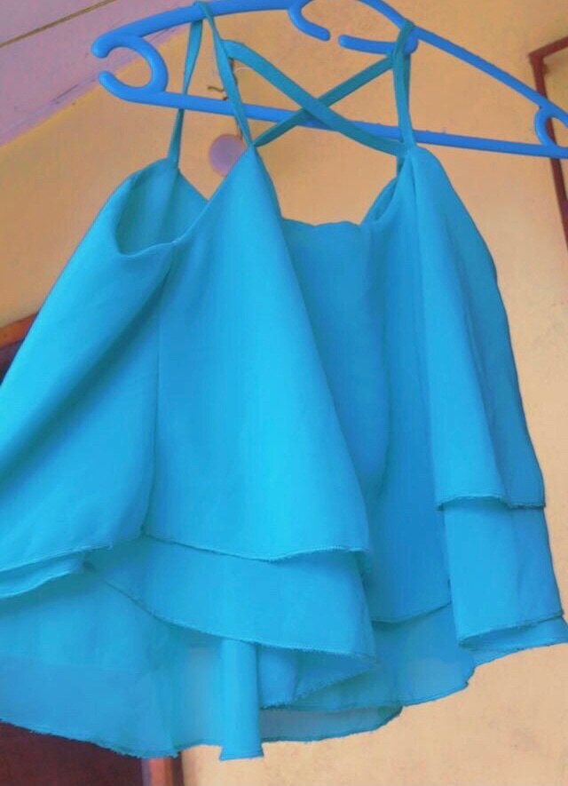 Ajoutez une touche de fraîcheur à votre garde-robe avec ce top à volants bleu, parfait pour les journées estivales. Son design aérien et ses bretelles croisées séduiront avec élégance.