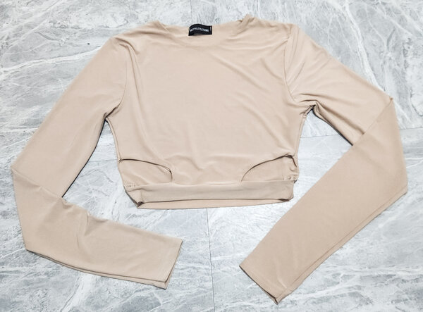 Pretty Little Thing Nude Crop Top With Cut Out (Thrift)