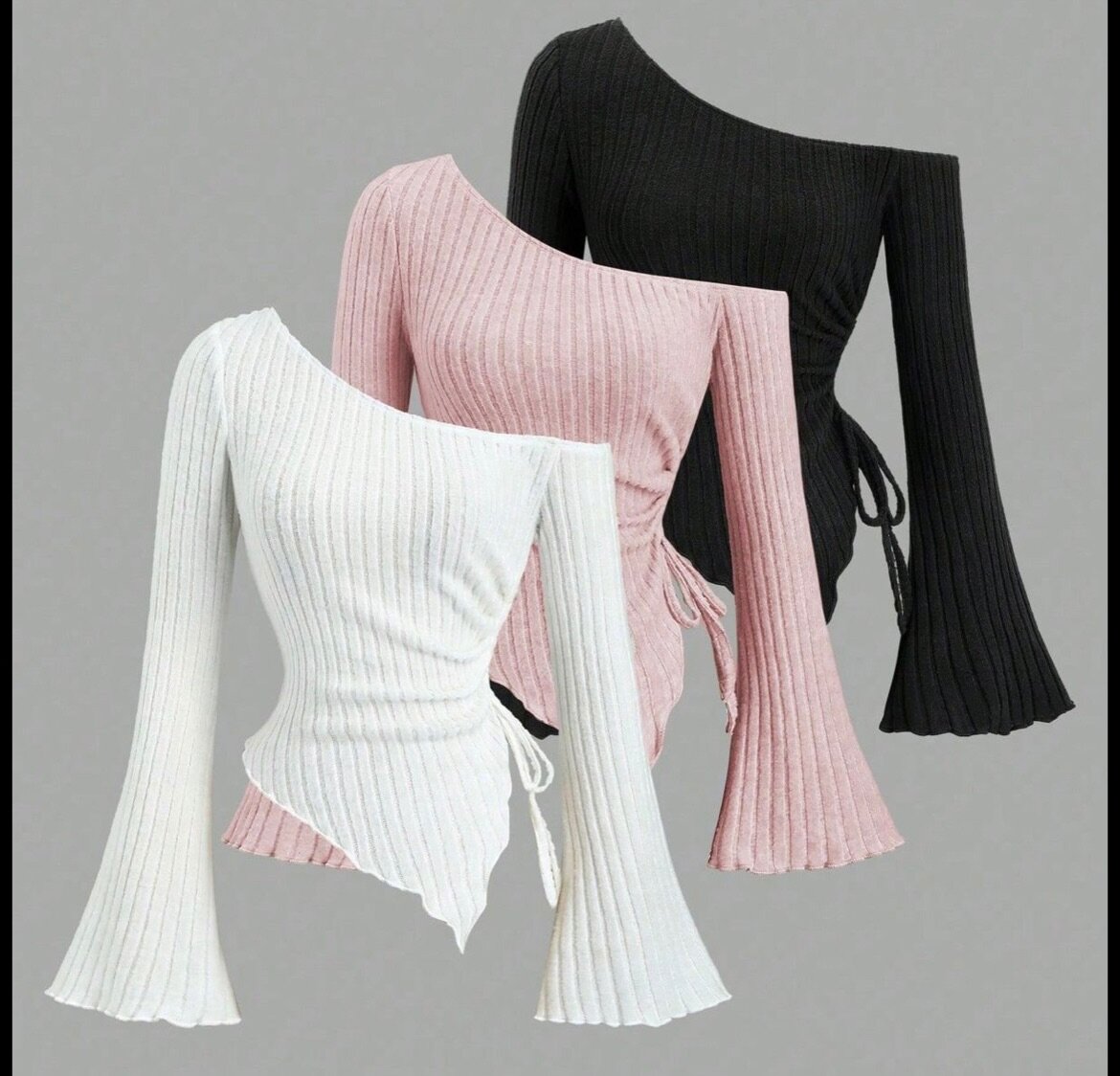 Adoptez un style unique avec ce top asymétrique côtelé. Disponible en plusieurs couleurs, il attire l'œil avec ses manches évasées élégantes. Parfait pour une sortie décontractée ou une soirée entre amis, ce top ajoute une touche de modernité à votre garde-robe. Confortable et tendance, il se marie facilement avec un jean ou une jupe.