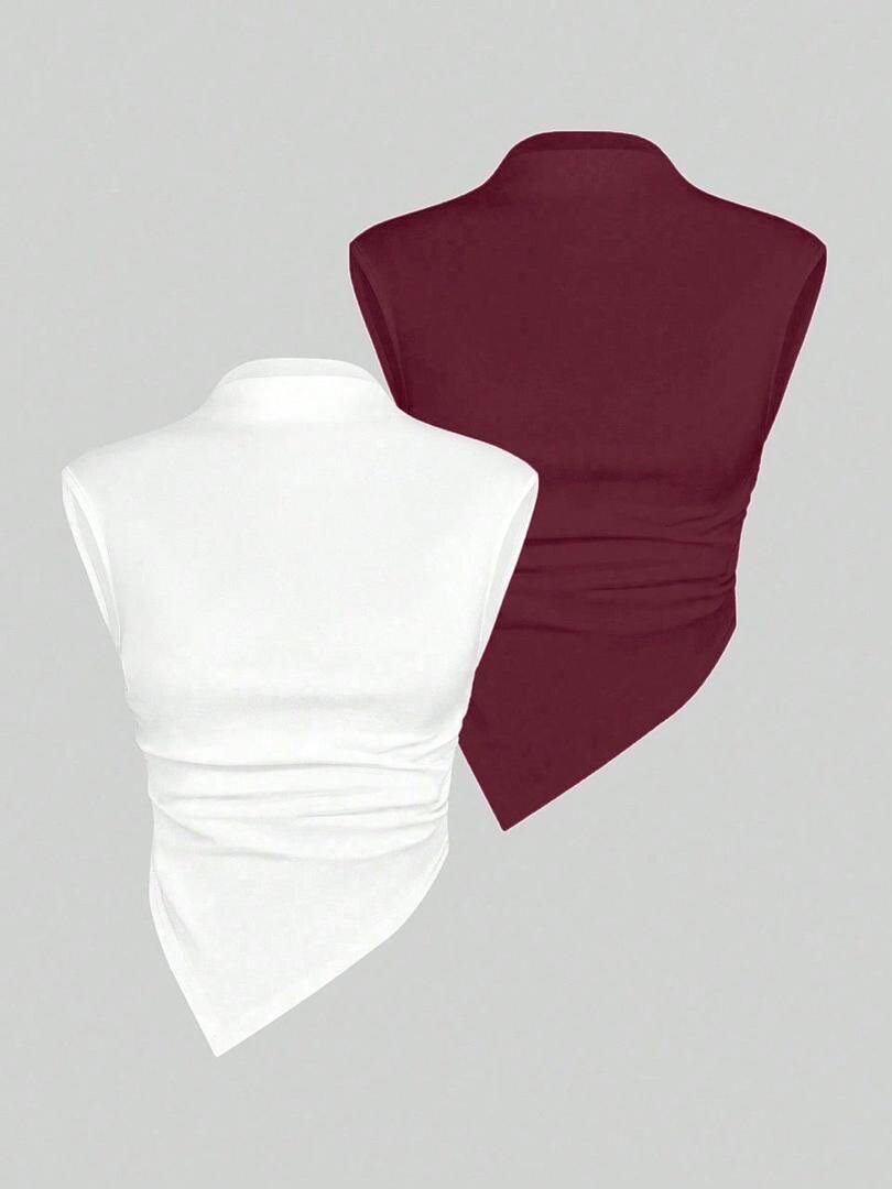 Magnifique ensemble de tops asymétriques pour femme, parfait pour un look élégant et moderne. Disponible en blanc et bordeaux, idéal pour toutes les occasions.