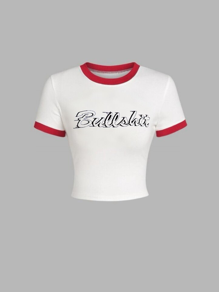 Embrace bold style with this graphic ringer tee. Crafted from soft, breathable fabric, it features a striking front print and contrast red accents. Ideal for casual outings or making a statement, pair it with jeans or skirts for a trendy look.