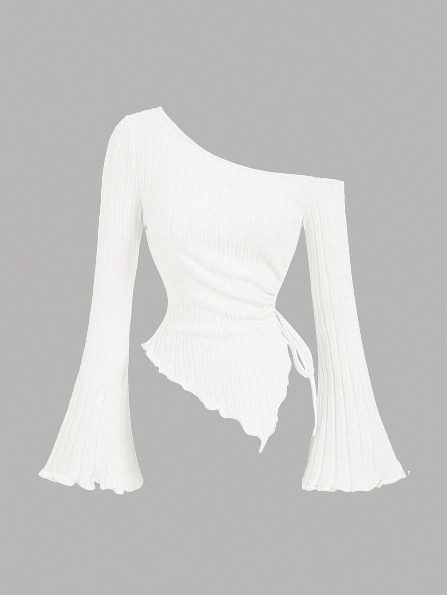 Adoptez un look chic avec ce top blanc asymétrique. Avec sa coupe unique et ses manches évasées, il est idéal pour une soirée ou un événement spécial. Facile à assortir pour un style sophistiqué.
